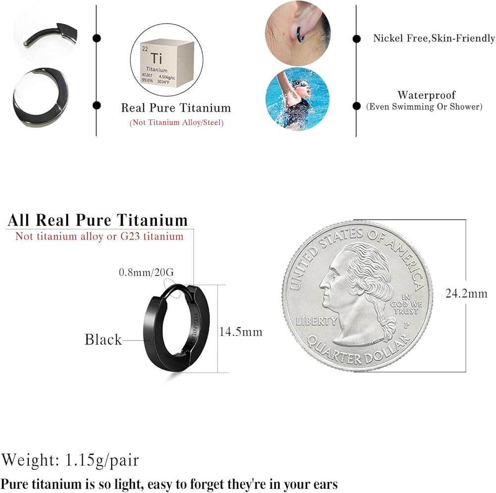 NICKEL-FREE and SKIN-FRIENDLY: Many men women are allergic to metals found in jewelry, especially Nickel. The men earrings hoops are made of pure titanium, you can wear comfortable and not swollen, or red earlobes