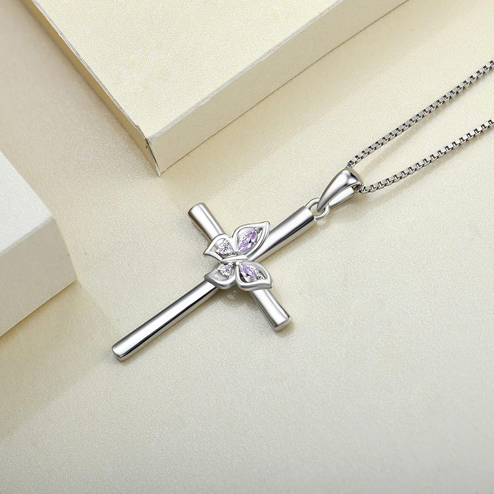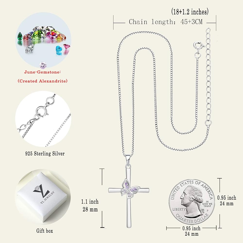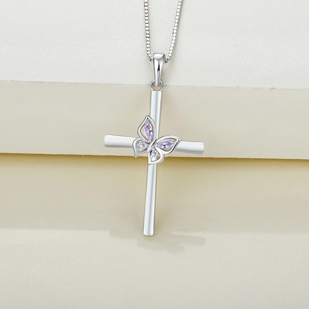 YL Butterfly Cross Necklace Sterling Silver Crucifix Pendant Gemstones Criss Jewelry for Women