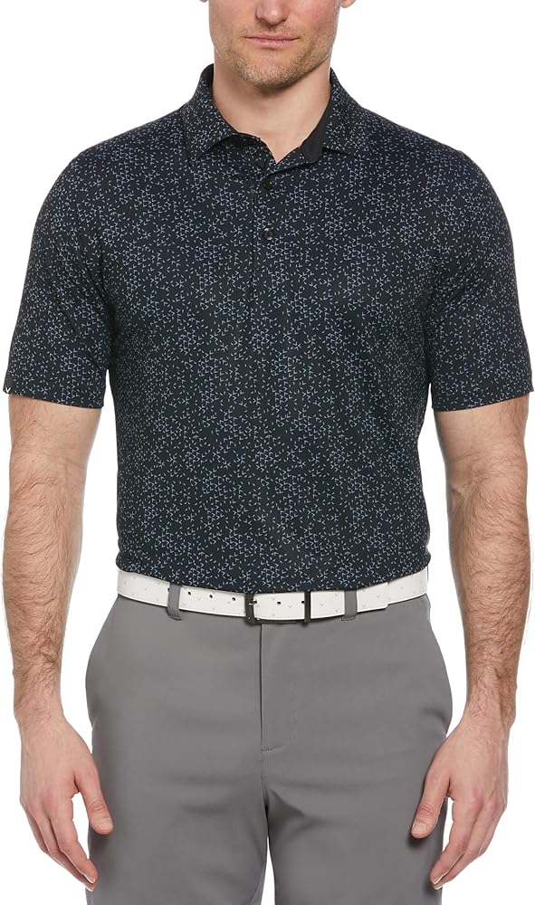 SWING TECH: Designed for effortless movement with every shot, this printed men's golf polo is equipped with Swing Tech technology, with engineered stretch shoulder seams for a full range of motion and a smooth swing.