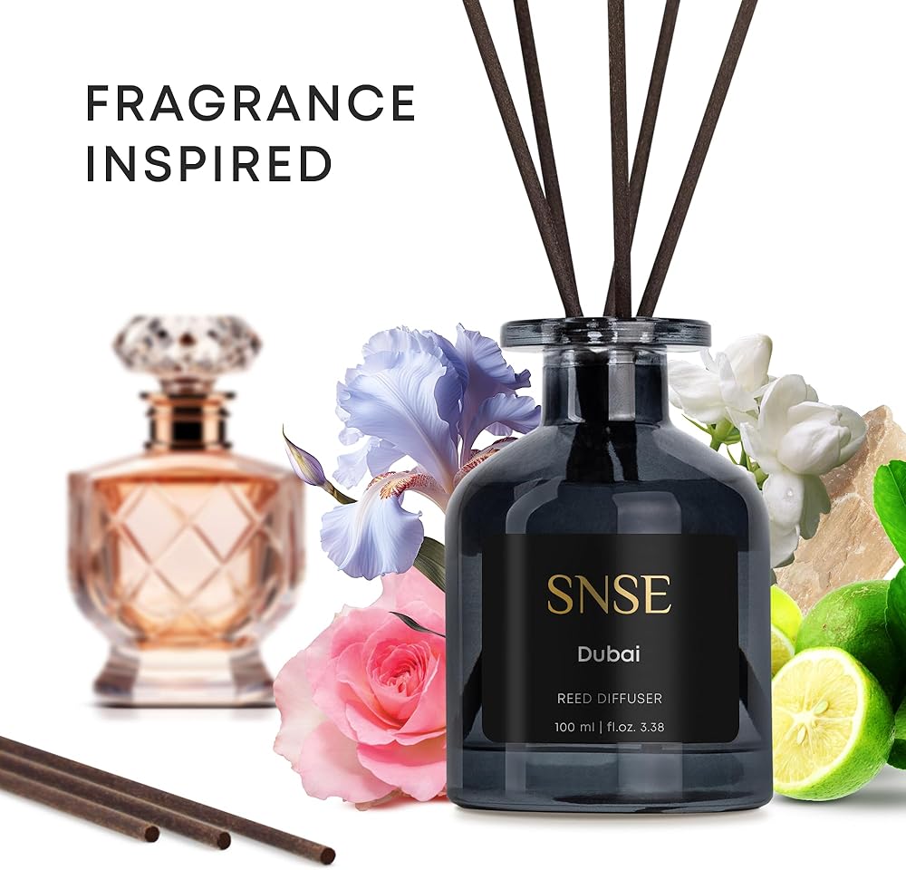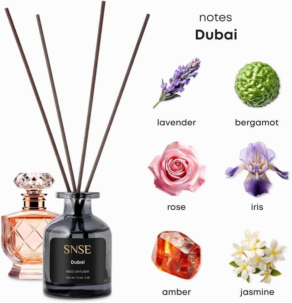 SNSE Dubai Perfumed Reed Diffuser Set - Premium Reed Diffusers for Home with Diffuser Reeds, Luxurious Gift Aroma, Sophisticated Scent, Ideal for Relaxation, Elegant Home Fragrance
