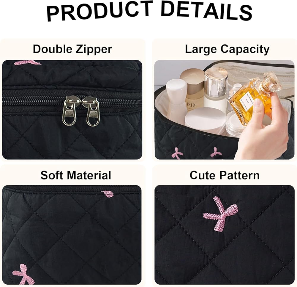 【High Quality】The quilted makeup bag is designed with a puffy padded structure and crafted from premium cotton fabric, which is not only soft and comfortable to touch, but also very easy to care for.