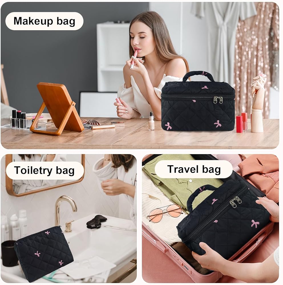 【A Lovely Gift】 The quilted cosmetic bag set is very cute and is suitable as a gift for your loved ones on Christmas, Valentine's Day, birthdays, Teacher's Day and other festivals.