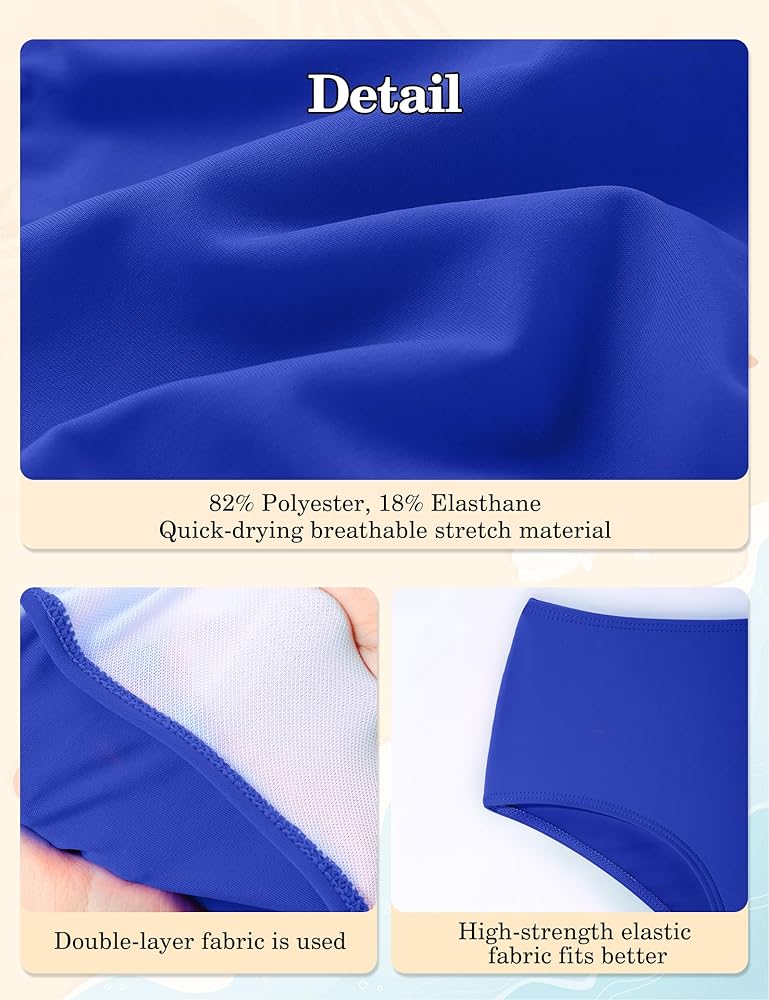 High waisted swimsuit: The high-waisted bikini bottom in the girls bikini set offers excellent coverage and elasticity, ensuring comfort and freedom during water activities. Its playful design enhances charm, making this tween girls swimsuits the perfect swimwear choice for kids