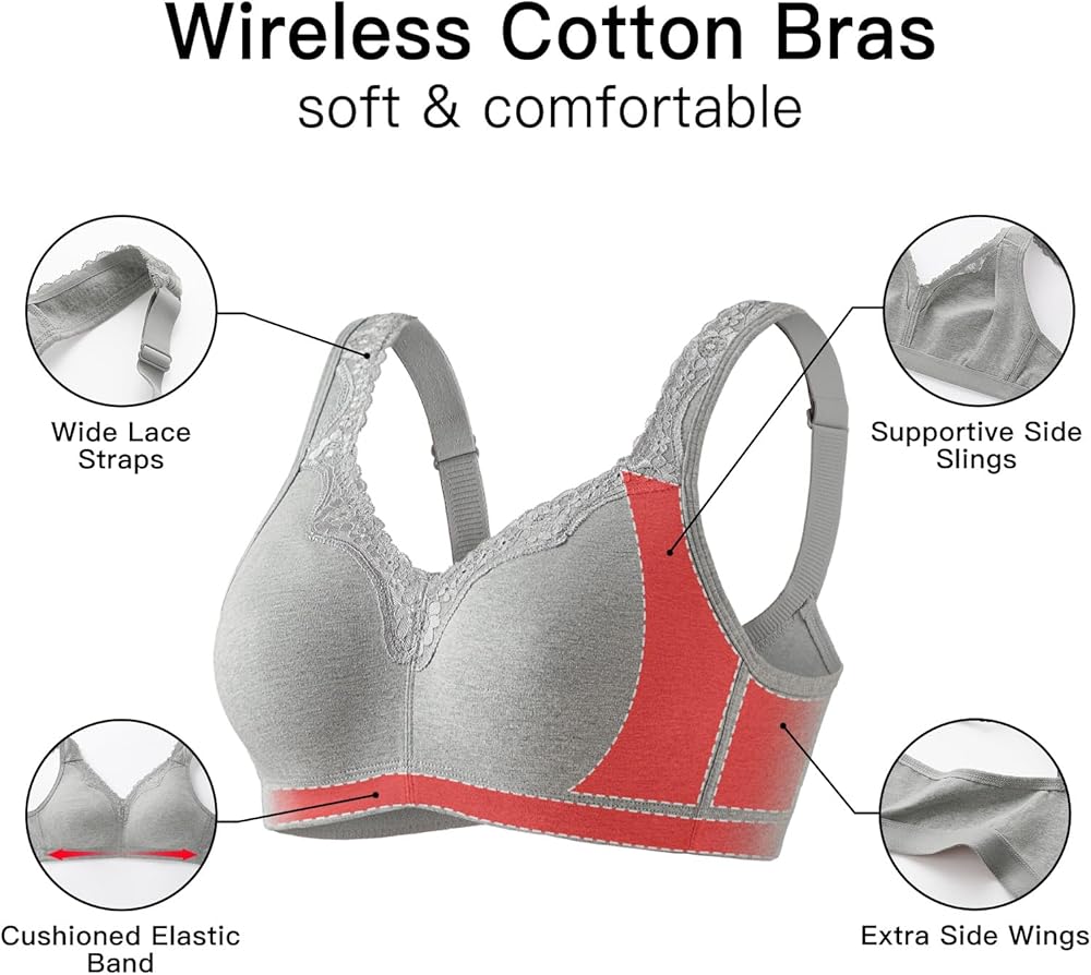 Baetty Wireless Bras for Women No Underwire Cotton Bra Full Coverage Unpadded 6803