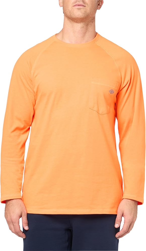 Our high-performance Men's Temp-iQ® Cooling Long Sleeve Pocket T-Shirt has built-in cooling technology. This crew neck pullover works for you while you work in style. It instantly activates when your skin temperature rises, wicking away moisture so you can stay cool and dry. Its easy-care fabric releases stains too, so you don't only feel fresh, you also look fresh. Dickies Cooling Long Sleeve Pocket T-Shirt has flatlock seams to reduce chafing and raglan styling to make it easier to move around in it. And the chest pocket with a pencil divider makes it easy to reach for your necessities.