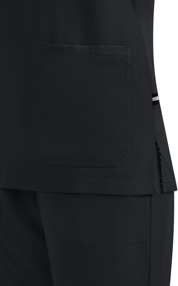 Modern, sporty split-neck scrub top that looks and feels amazing. Contemporary fit.