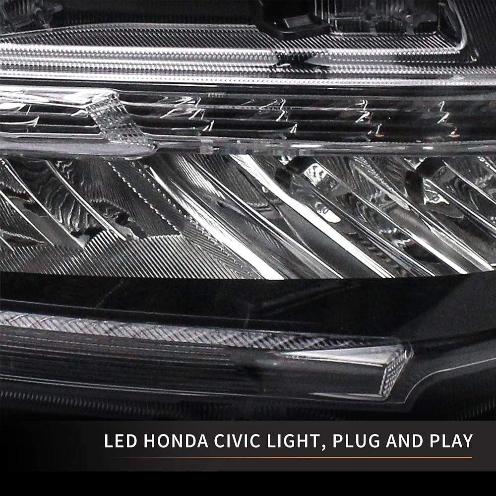 🔷Direct OEM Fitment - Full LED bar headlamps assembly for Honda Civic Sedan / Coupe / Hatchback / Type R 2016 2017 2018 2019 2020 2021. Designed as a perfect replacement for your OE lights, they install the same way as factory units.Same connections and wires with the original cars. Easy to install.