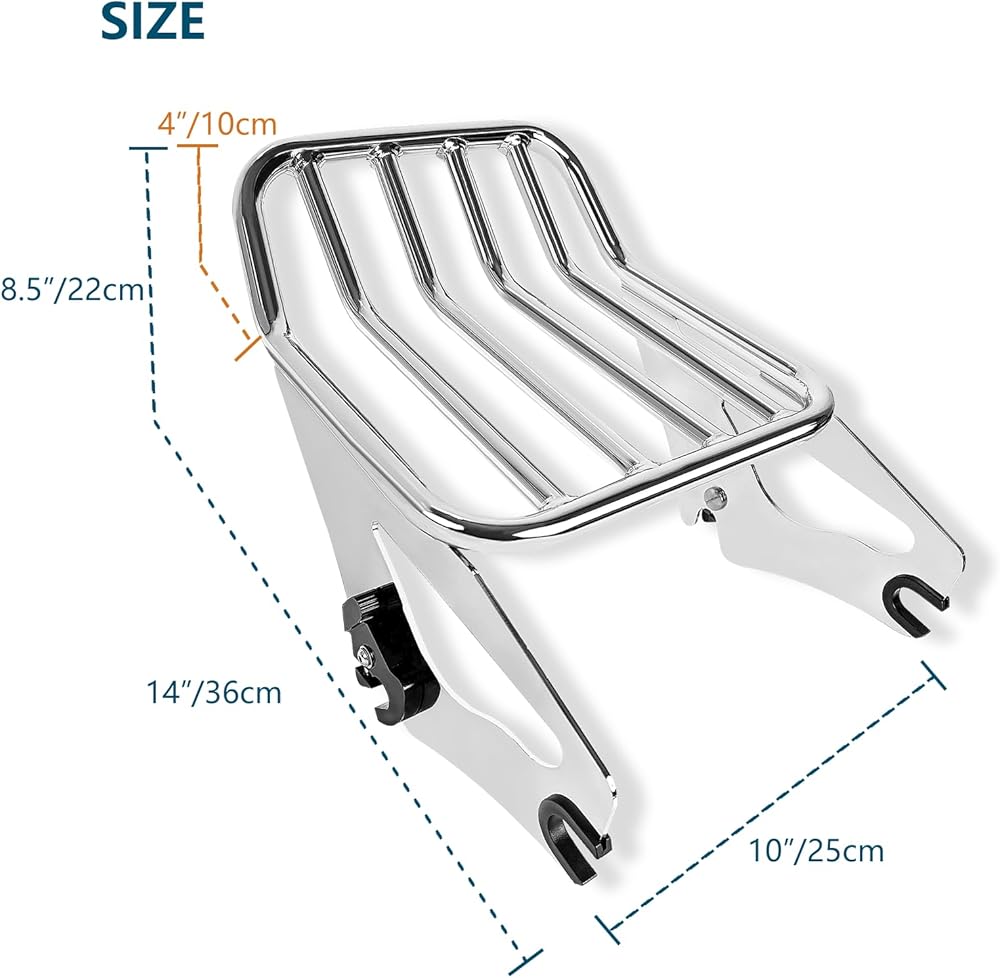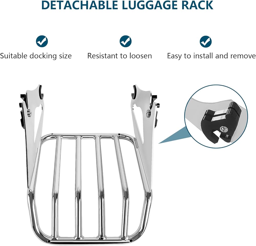 🏍 PACKAGE INCLUDED - 1 x Detachable luggage rack with two latch clips; 100% aftermarket new. Note: Check latch clips for looseness on long trips. Requires separate purchase of 4-Point Docking Hardware Kit (not included in the supply list)
