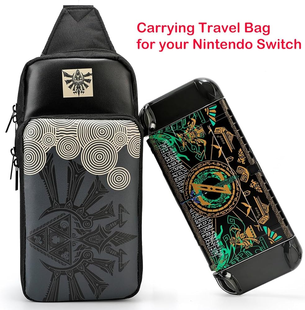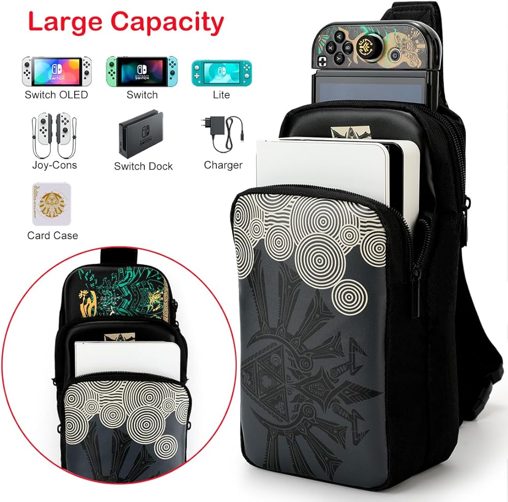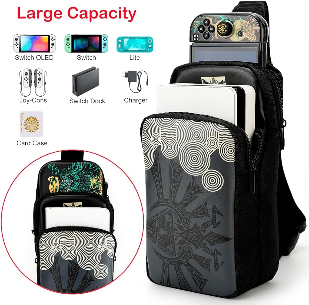 Owngen Cute Travel Bag for Nintendo Switch/Lite/OLED, for Tears of the Kingdom Portable Sling Shoulder Crossbody Carrying Storage Accessories Backpack with Cute Game Card Case, 4 Thumb Grip Caps