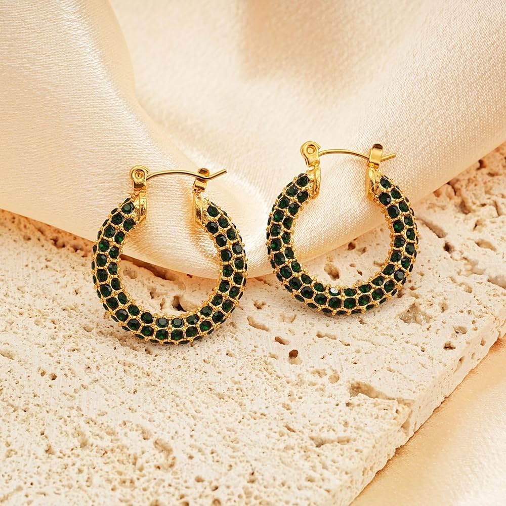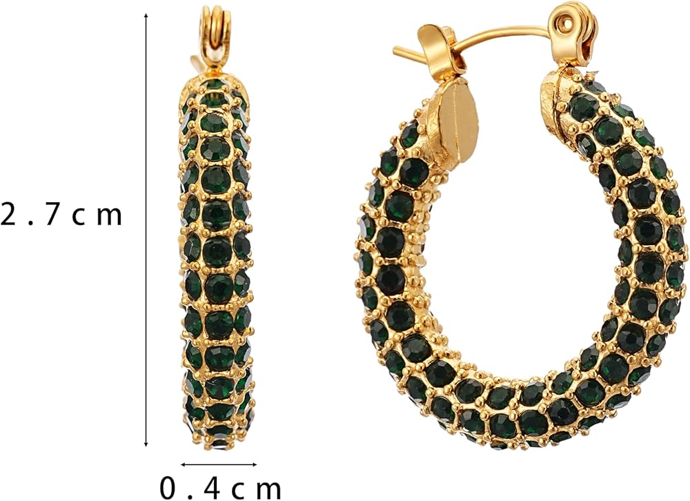 Fashion Design: This pair of earrings has hoop design and the exterior is set with shiny green Cubic Zirconia to make you the center of attention.