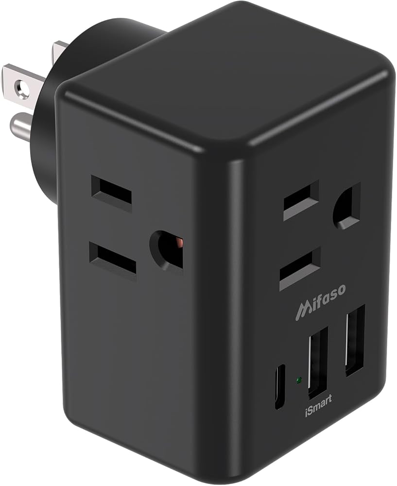 【6-IN-1 Multi Plug Outlet】- 3 AC outlets are separated without blocking each other, compatible with standard North American 2 and/or 3 prong flat pin plugs.