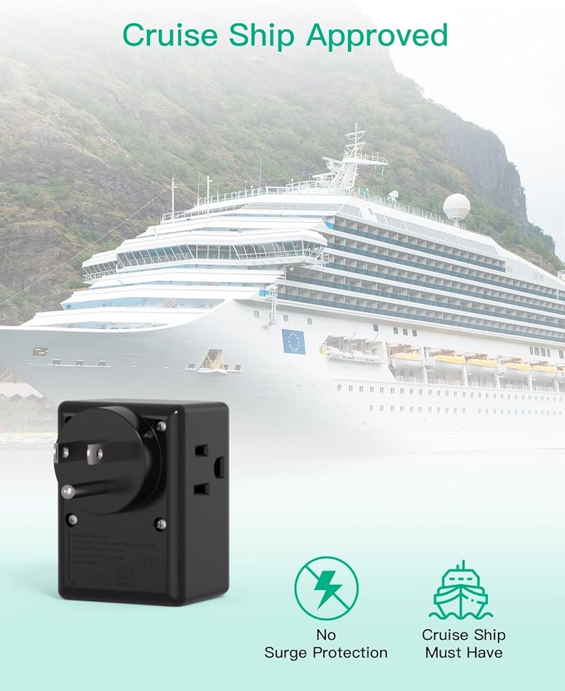 【Cruise Accessories Must Haves】- No surge protector and without extension cord to be fully cruise ship requirement, compliant with major cruise lines - Carnival, Royal Caribbean, Princess etc.