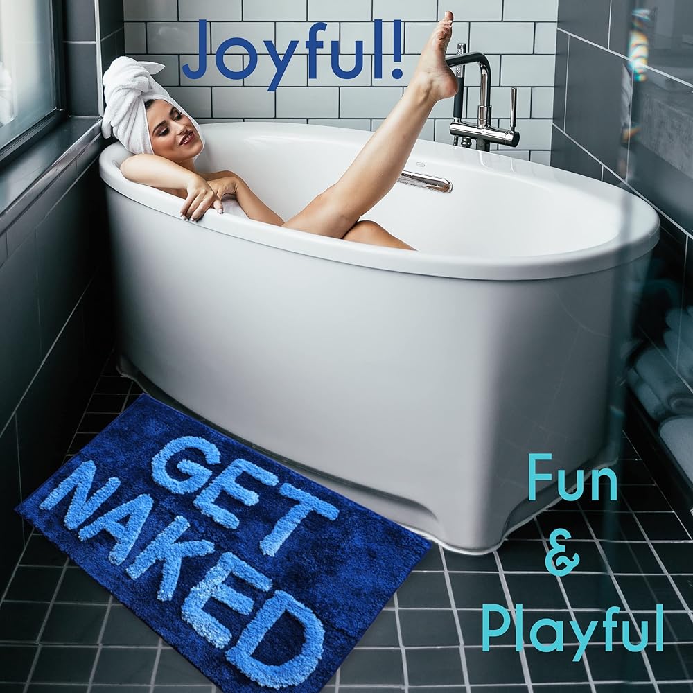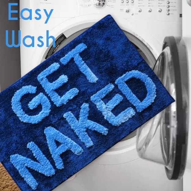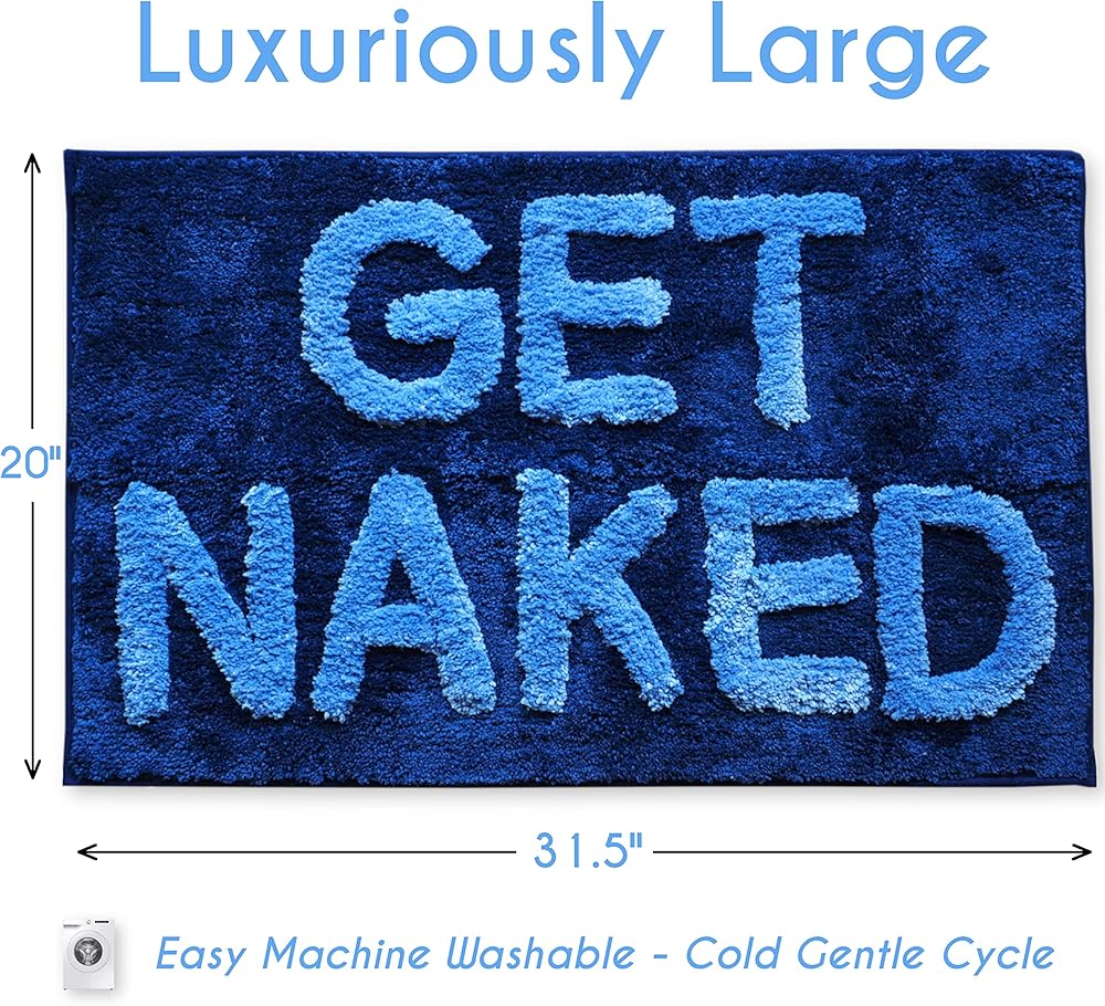 Evovee Get Naked Bath Mat 31.5x20 Funny Cute Bathroom Rugs Navy Blue Lavender Get Naked Rug Shower Funny Bathroom Decor Fun Cute Bath Mat Non-Slip Washable