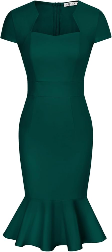FEATURES: Bodycon pencil dress; 50s style; cap sleeves; v-neck; back zip; tweed flower pattern, slim fit, strechy fabric
