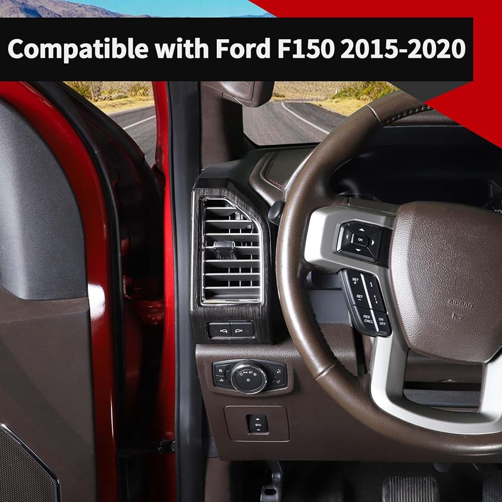 Voodonala for Ford F-150 Center Console Dash Side Vent Panel Cover Compatible with Ford F150 2015-2020(Black Wood,3Pcs/Set,Outer Left AC Vent w/Spot Light Switch)