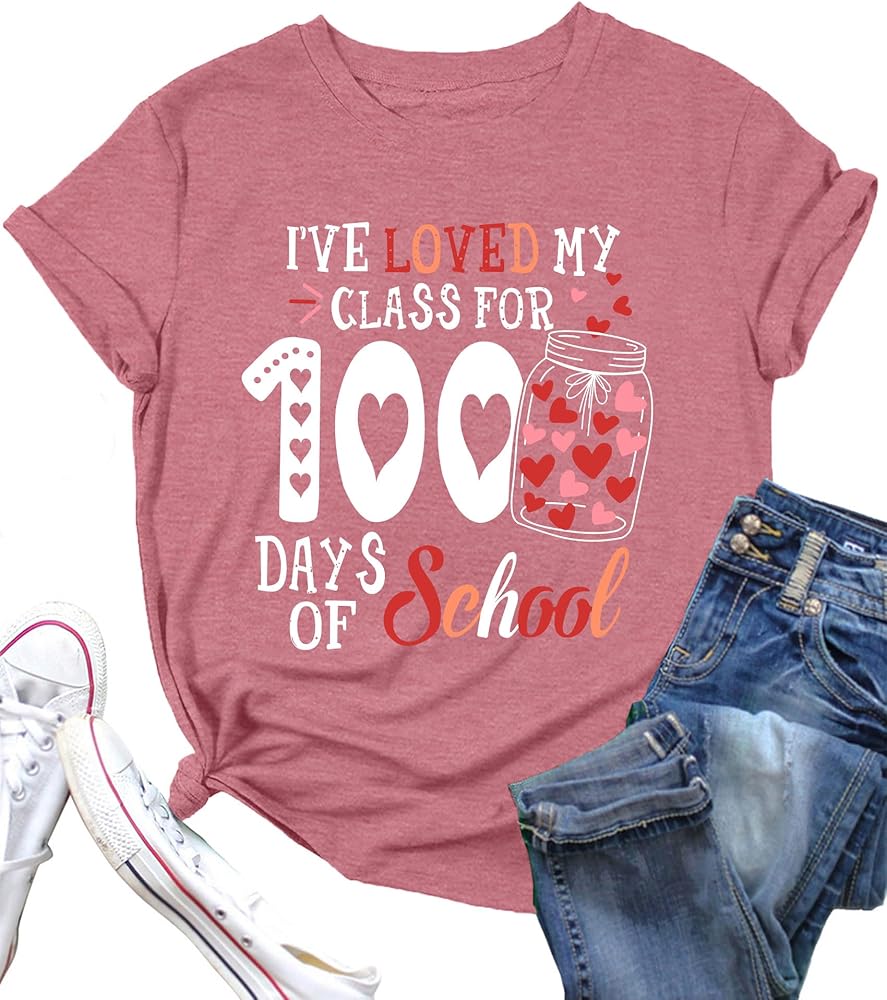 Unique Design: Unique 100 days of school shirts, valentines teacher shirt, funny teacher tee tops, i've loved my class for 100 days of school t shirts, love heart graphic tops, teacher live shirt, The trendy design makes people shine, showing your difference.