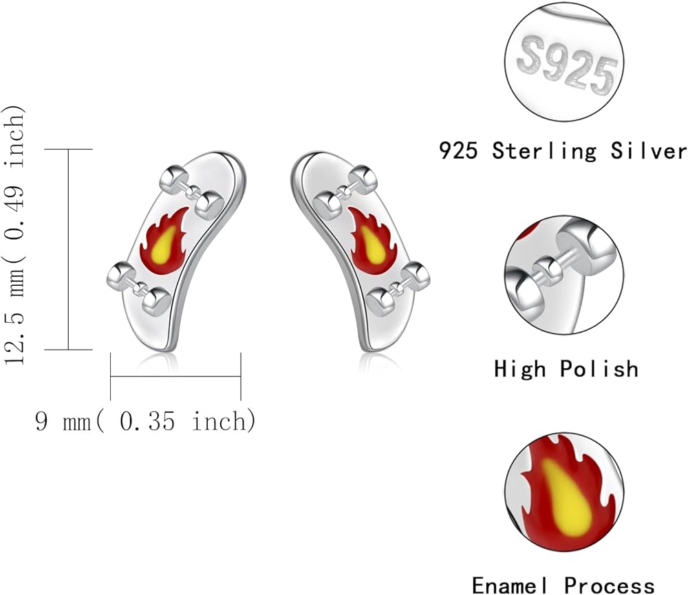 High Quality: This skateboard Stud Earrings Jewelry is made of high-quality 925 sterling silver,and will not turn your ears green, red,or itchy. Nickel-free,lead-free,cadmium-free and hypoallergenic. No harm to sensitive skin