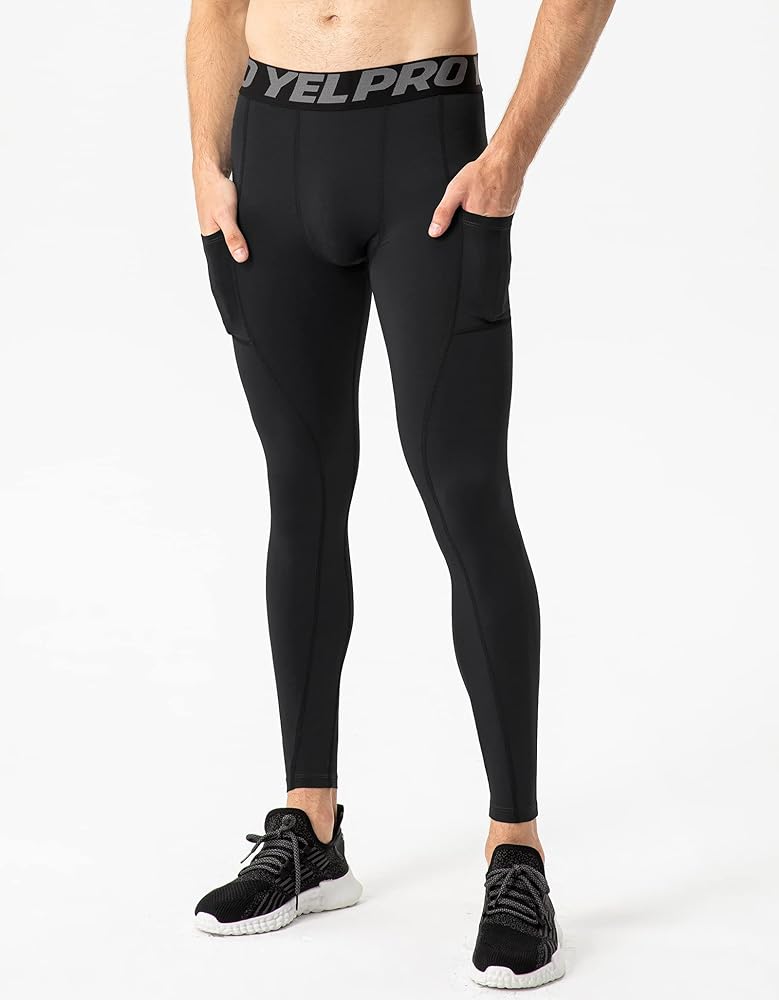 Men Running Leggings Baselayer Cool Dry Athletic Gym Tights With Pockets.