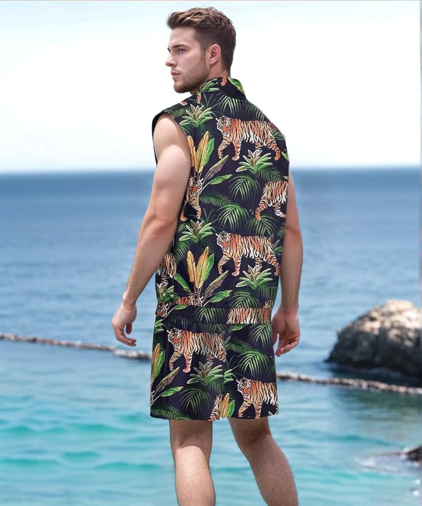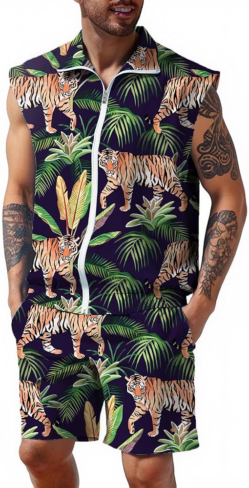 Two Piece Set: The set includes a zip-up vest and a pair of shorts with two large pockets on both sides, the set is three-dimensional and stylish to wear, fine workmanship and high quality fabrics give you a better wearing experience.
