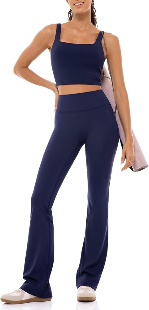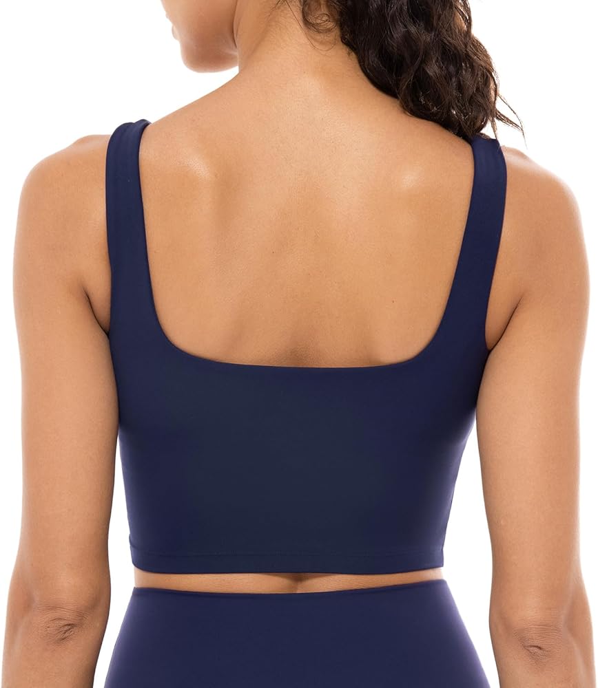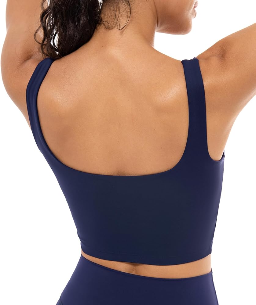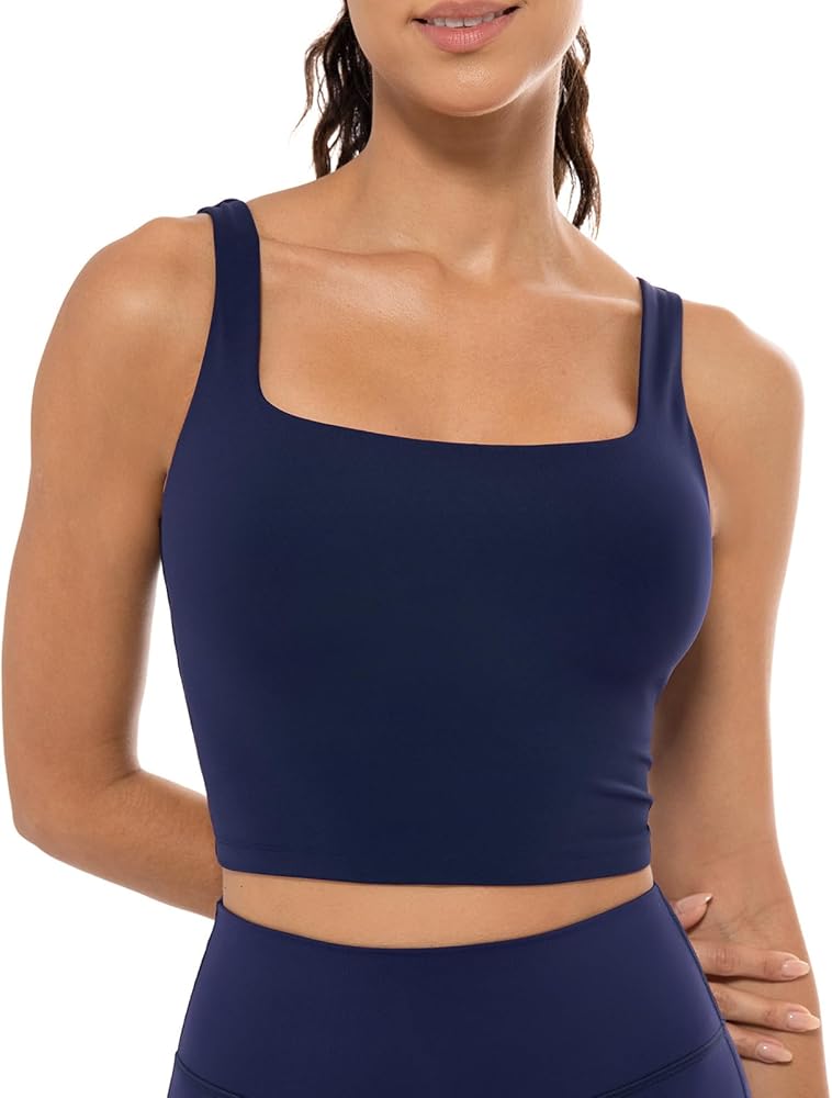 Lavento Women's Square Neck Sports Bras - Longline Padded Workout Yoga Tops with Built in Bra