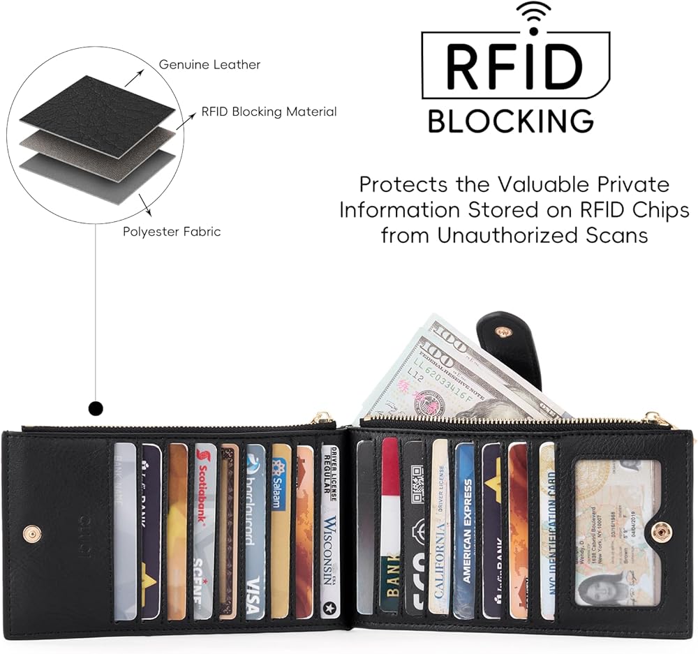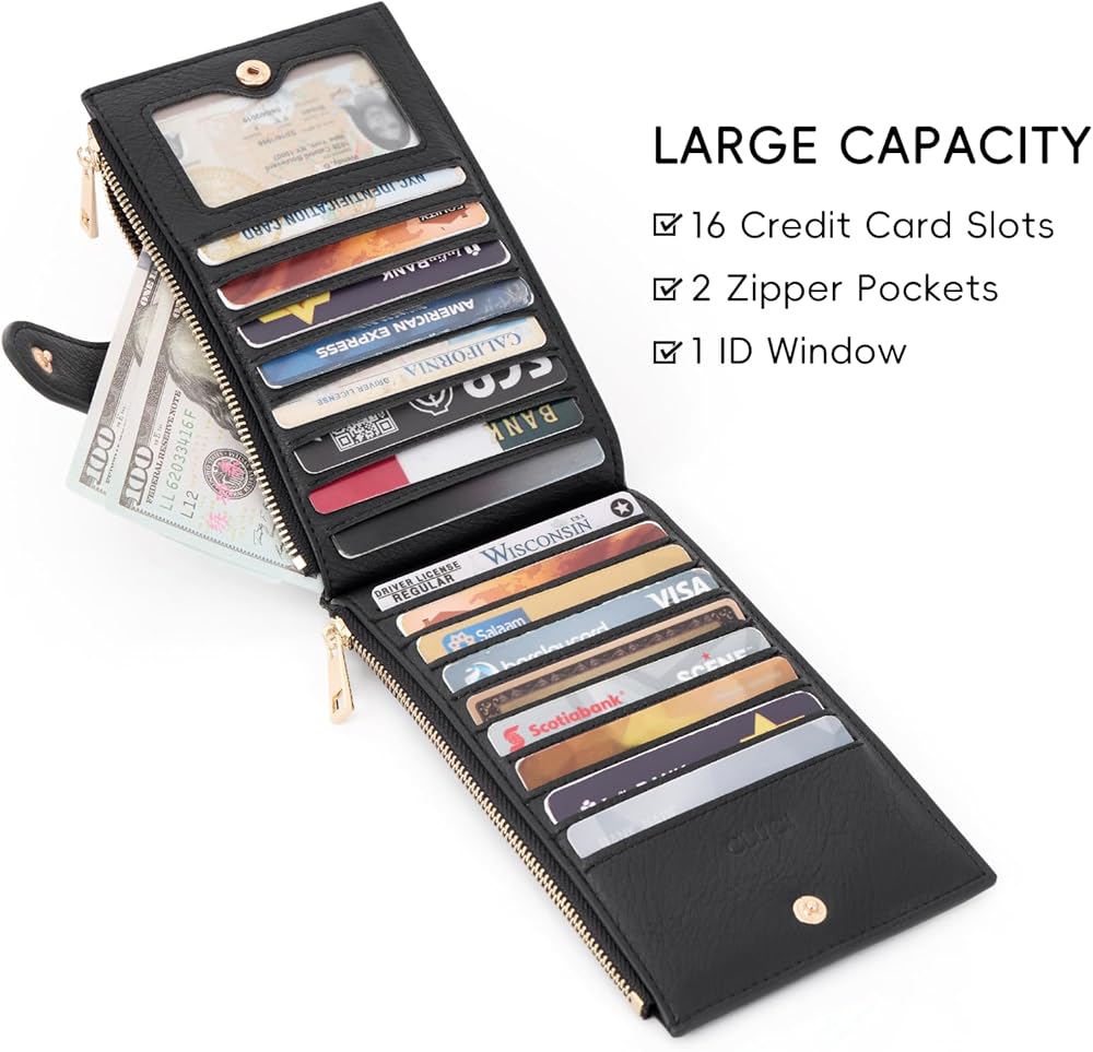 PRACTICAL FEATURES: 16 Card Slots, 1 ID Window, 2 Zipper Pockets. Purses for women with a snap to buckle up are perfect to organize all your personal essentials. Useful every-day carry for you to put all your phone, coins, cards, IDs, cash, receipts, tickets and other small items.
