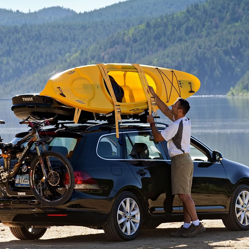 2 Inch 20Ft Heavy Duty Ratchet Straps: The 20 feet long and 2 inch wide of polyester webbing is perfect for carrying any luggage, kayaks on the roof of the car to secure them while being transported on the road. Package include 4-packs to meet your needs