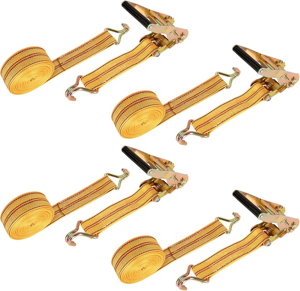 DAJAVE 4 Pack Ratchet Straps Heavy Duty, 2 Inch 20Ft Tie Down Straps with Double J Hook, 4400 LBS Cargo Ratchet Straps for Moving and Securing Cargo Lawn Equipment and Motorcycles (Yellow)