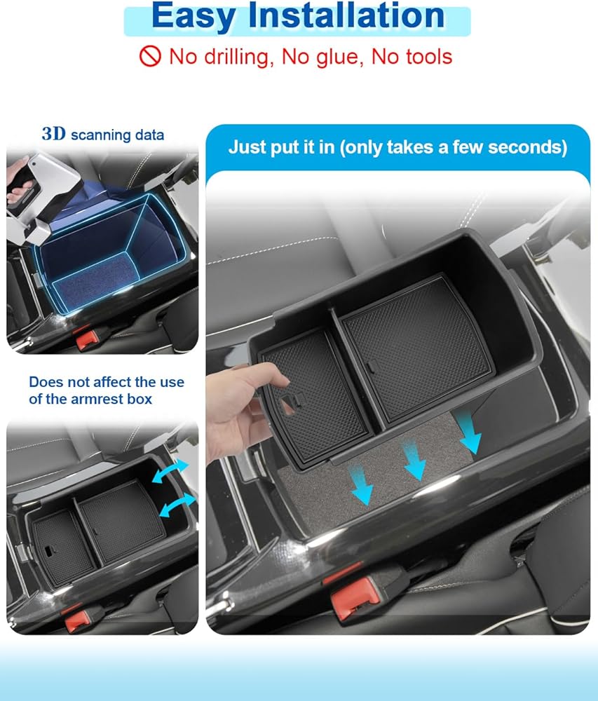 2.100% Match: It fits the 2023 2024 V olkswagen ID.4 Armrest Box perfectly, just like the original equipment. It's the same size as 2024 2023 ID.4 console armrest organizer, and it's very easy to install