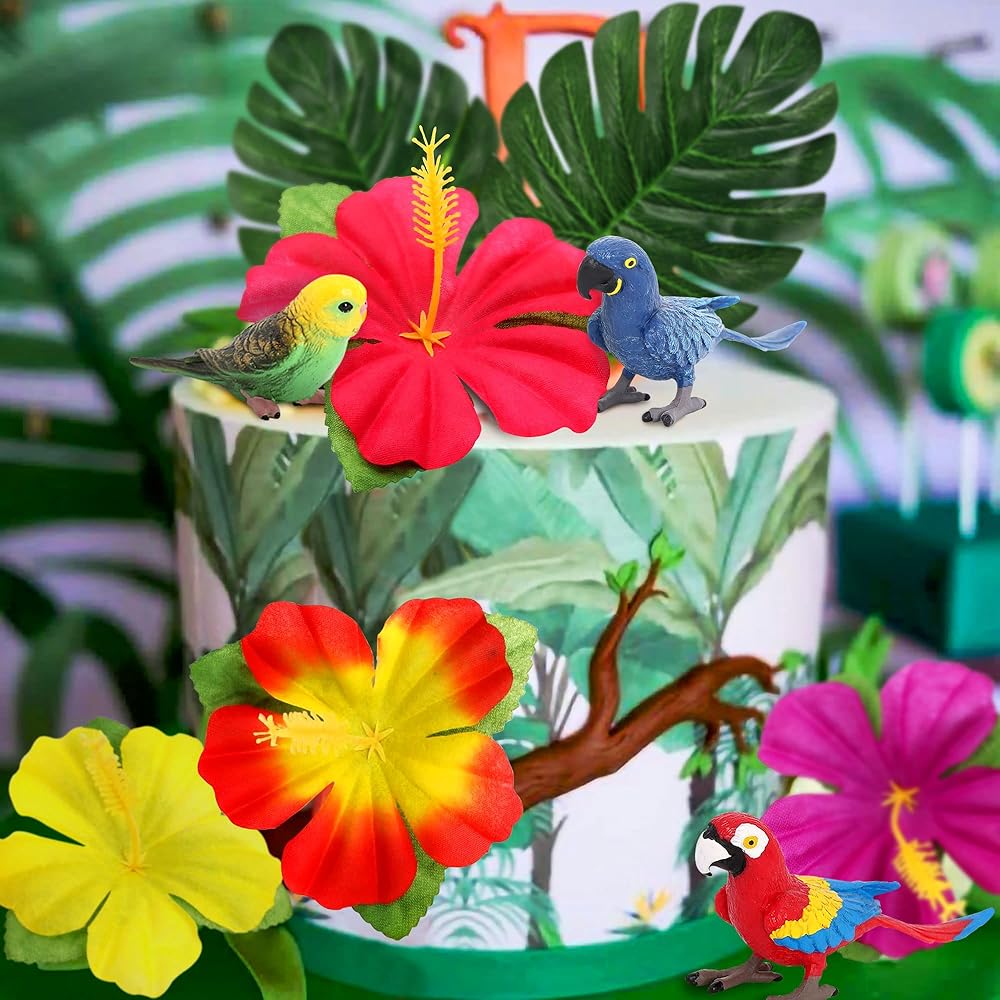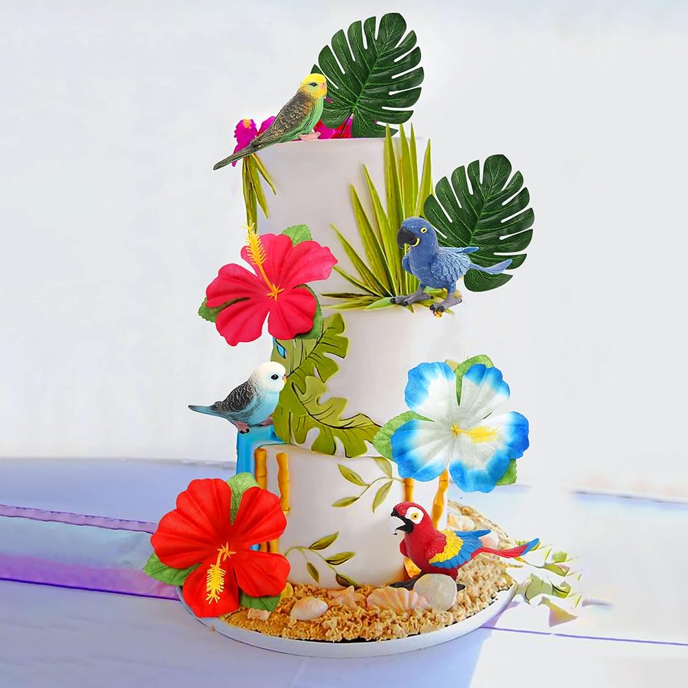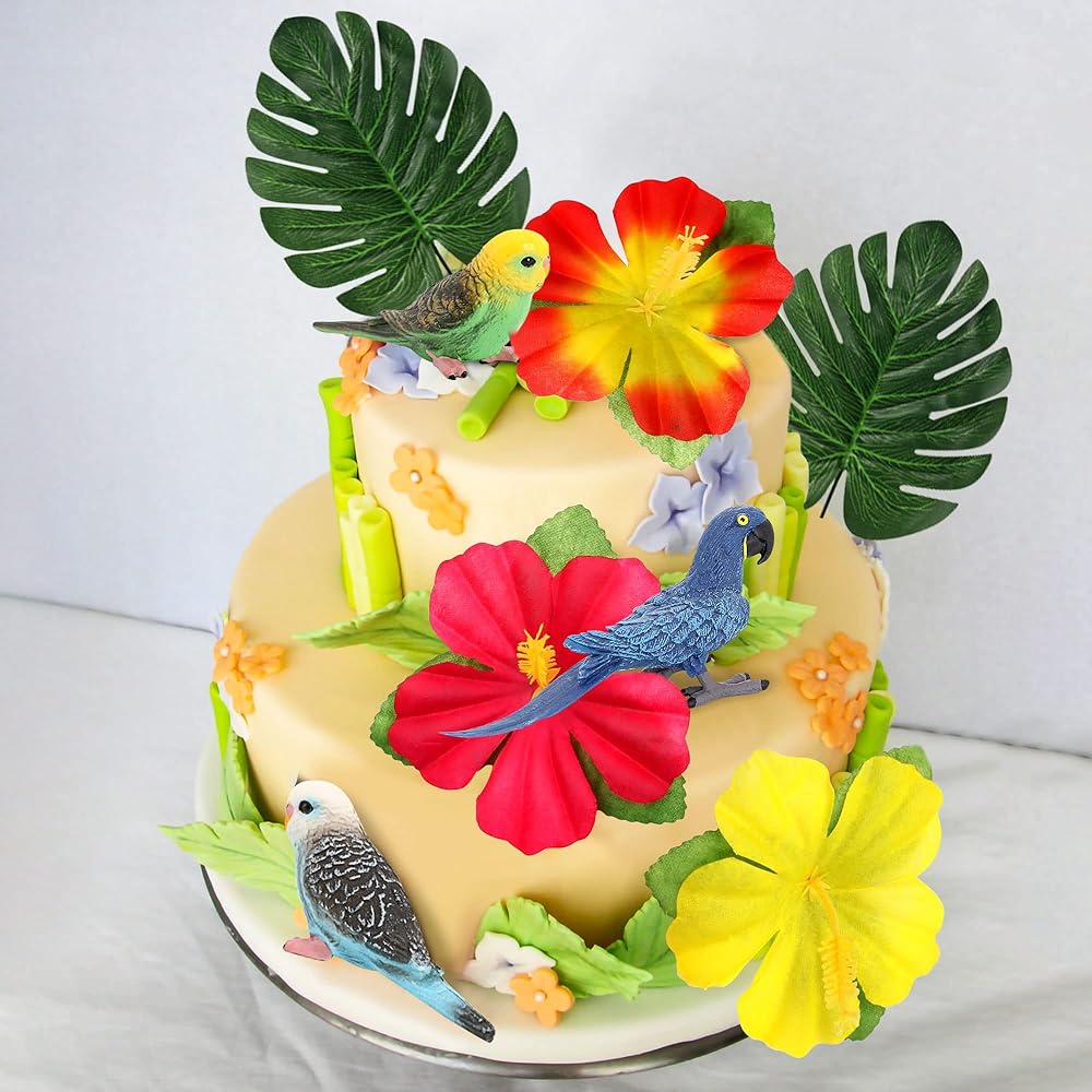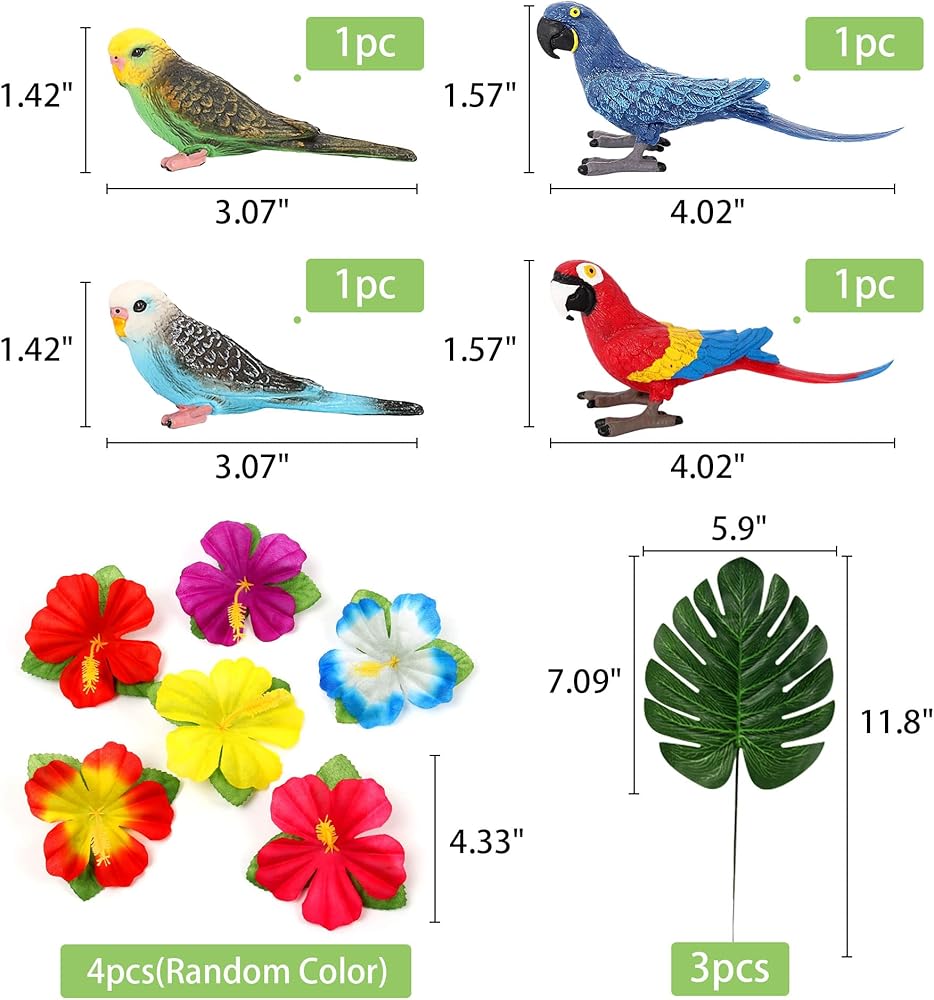 - What you will receive: 2 x small parrot figures , 2 x big Tropical Bird figures, 3 x palm leaves, 4 x flowers.