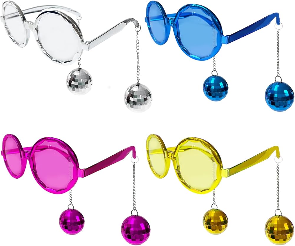 Retro Disco Ball Party Favors Funny Glasses 4 Pack, Disco Sunglasses Accessories for Women and Men