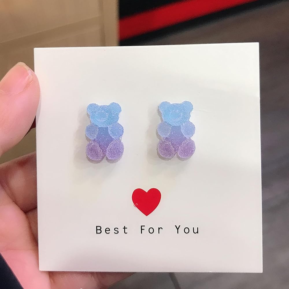 Material: Made from high-quality 925 silver and resin, these gummy bear stud earrings offer durability and a playful, colorful look, perfect for adding a fun touch to any outfit.