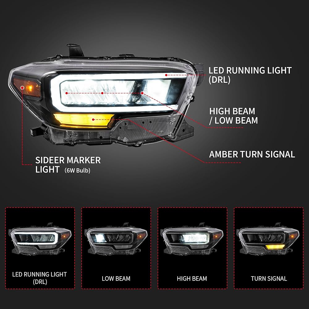 Headlights Assembly for Toyota Tacoma 2016 2017 2018 2019 2020 2021 2022 2023