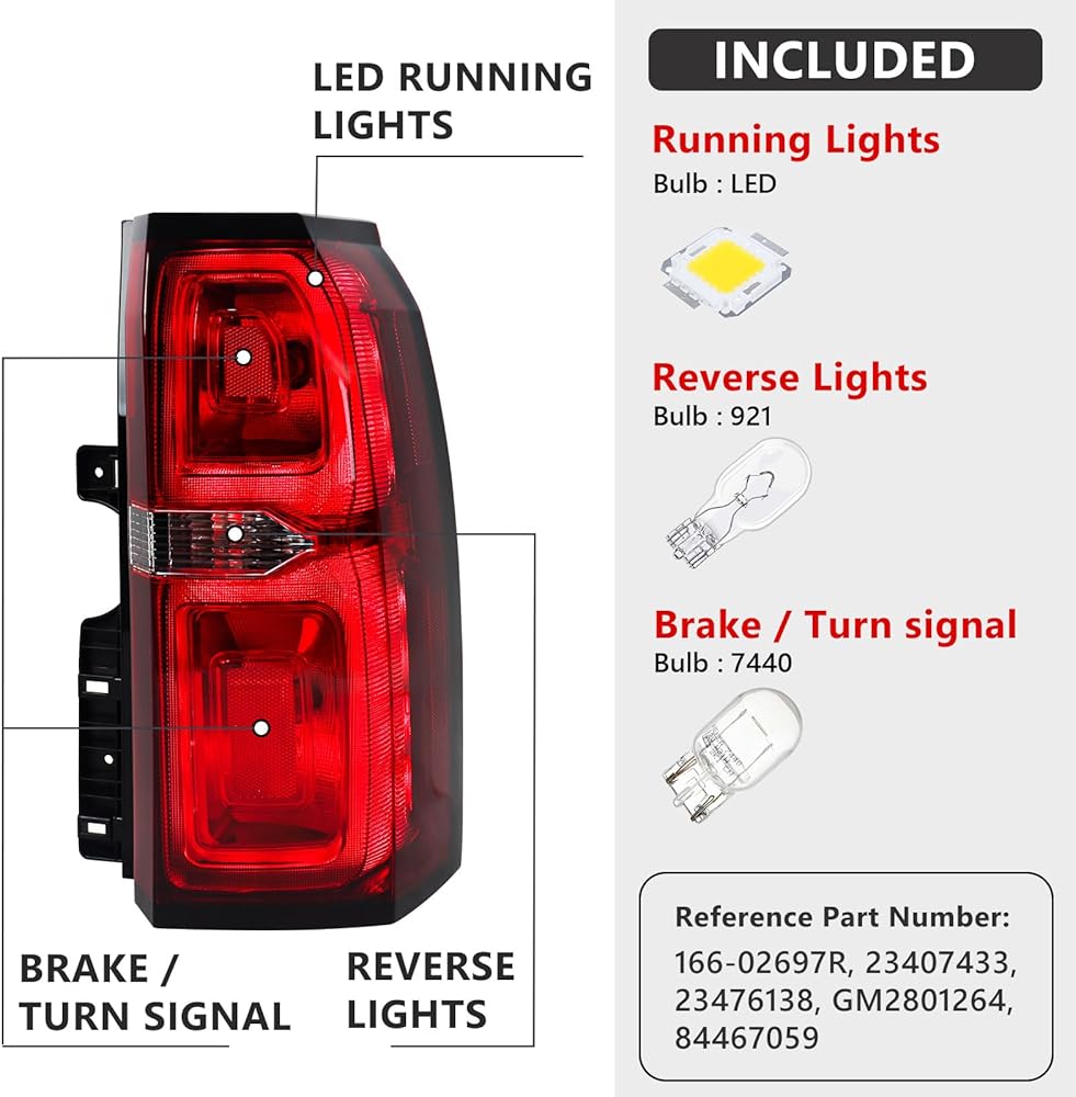 [ADAPTATION] Left Tail Light Fit for Chevy Tahoe/Suburban 3500 HD 2015 2016 2017 2018 2019 2020. The best replacement for the old one.