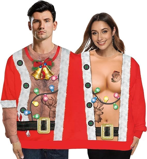 Features: Our Two Person 3D Ugly Christmas Sweatshirt is not only great to wear during the Christmas season, it can also make a fun gift. Whether celebrating Christmas at home, going to a party or having a warm time, this Two Person 3D Ugly Christmas Sweatshirt for Women Man can bring joy and happy moments for you and your partner or friends