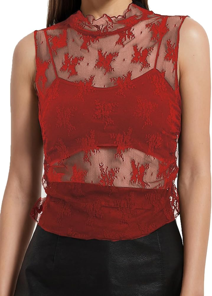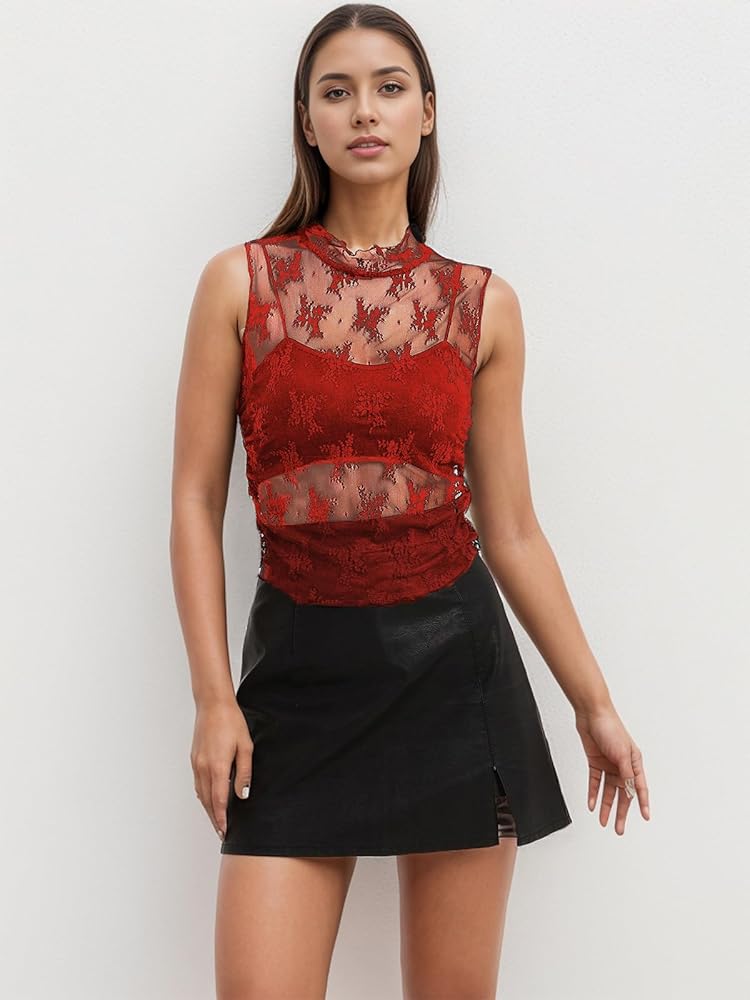 Features: Floral tops for women and mesh tank top women. These sexy summer tops feature a sheer design with floral embroidery, a mock neckline, solid colors, ruched sides, a slim fit, and a cropped length. They are a must-have addition to your wardrobe