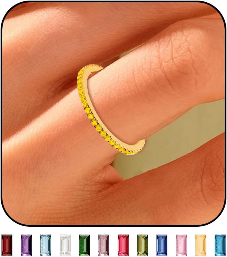 Gold Birthstone Rings for Women Non Tarnish 14K Gold Plated Birthstone Rings Dainty Stackable Birthstone Rings Personalized Birthday Jewelry Gifts