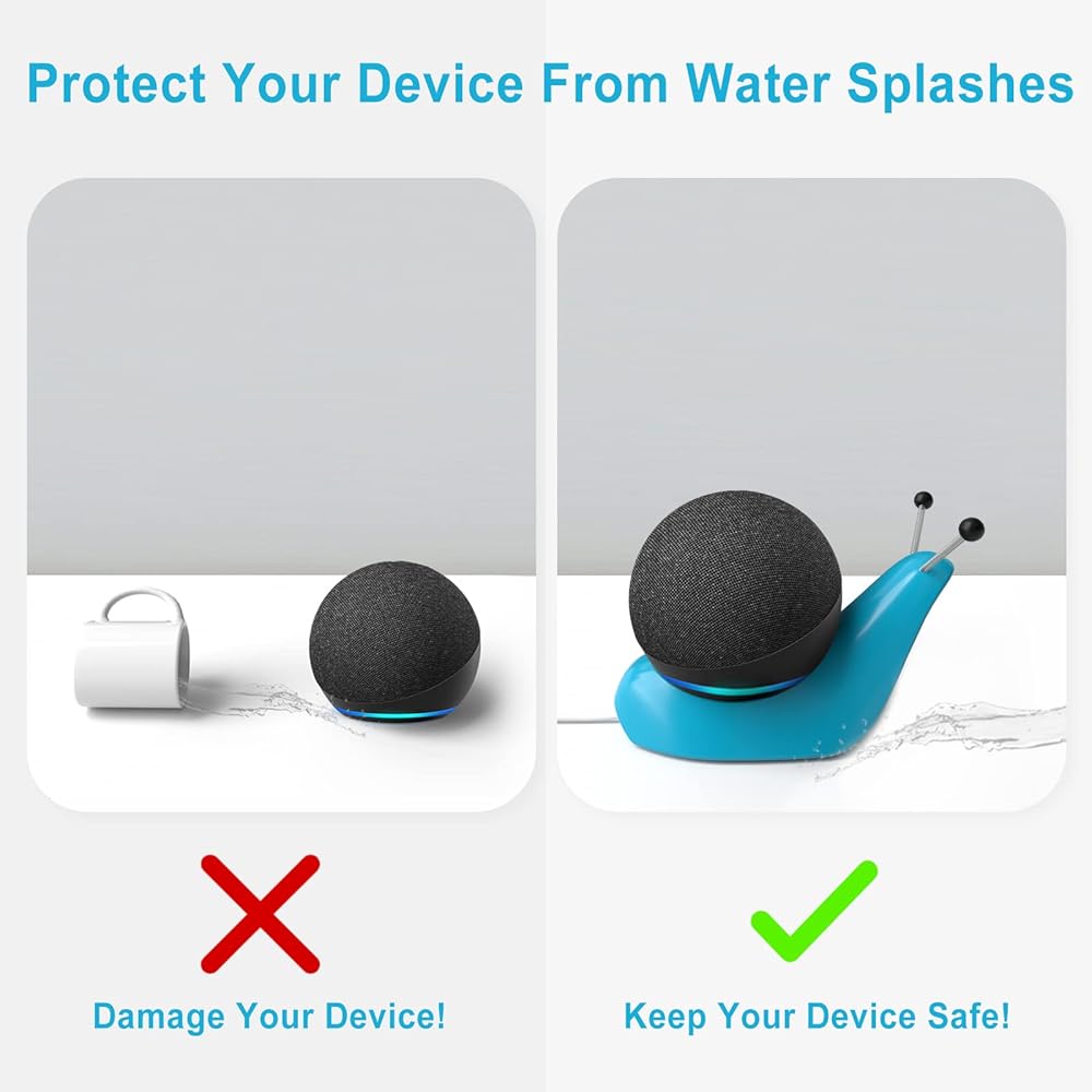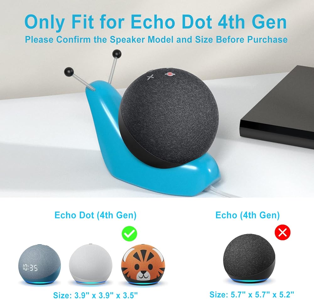 Cute snail shaped table stand designed for Echo Dot 4th Gen, for Echo Dot 4th Gen with clock and for Echo Dot 4th Gen Kids; stand mount for Echo Dot 5th Generation, for Echo Dot 5th Generation with clock and for Echo Dot stand 5th Generation kids.