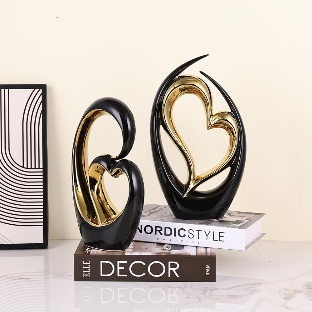 Exquisite Design & Craftsmanship: This magnificent piece captures the essence of love in a "love statue" that beautifully combines "blue and gold decor". Whether it's the intricate "double heart sculpture art" or the mesmerizing "heart figurine", every detail reflects sheer elegance, making it an ideal "couple sculptures home decor".