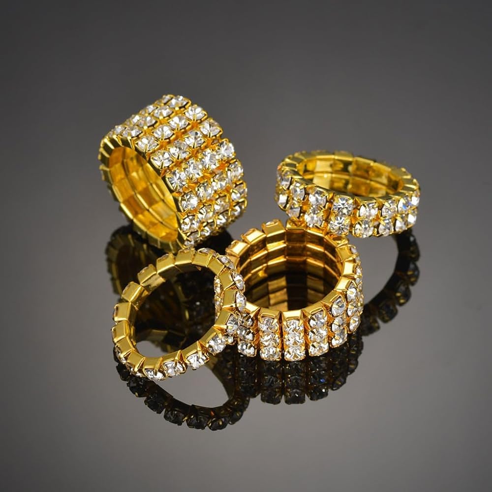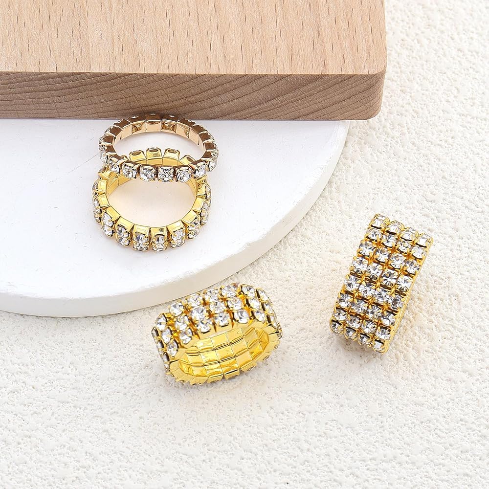 [After-Sales Aervices] We are very pleased to introduce to you the gold rhinestone elastic rings set. If you have any questions, please tell us, we will give you a satisfactory solution as soon as possible