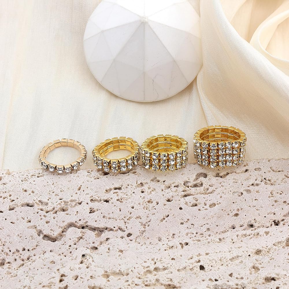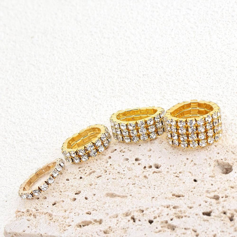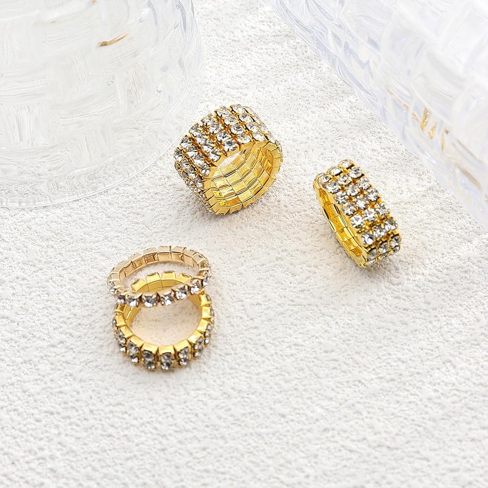 [Ideal for Various Holiday Gifts]The appearance of gold rhinestone elastic rings set is super pretty, it is best as a gift for friends and yourself. The gold rhinestone elastic rings set is the best gift for Christmas, Halloween, Thanksgiving, Valentine's Day, Mother's Day, birthdays, anniversaries and more