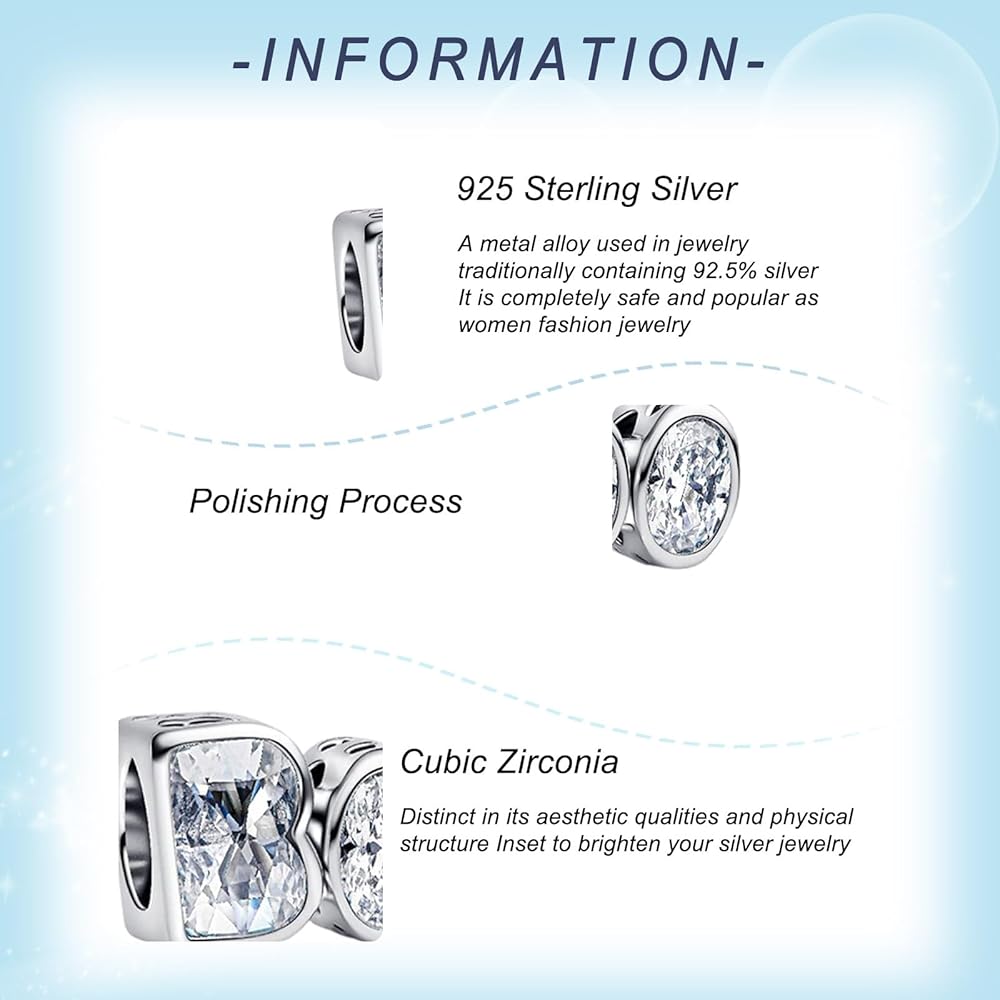 • Material: The charm is finely machined from 925 sterling silver and 5A cubic zircon