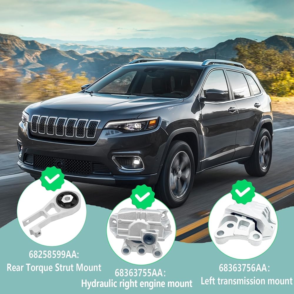 Engine Mount , Right Side Engine Motor Mount & Transmission Left Mount Sets, Rear Torque Strut, 68363756AA, 68363755AA,68258599AA,Compatible with 2015-2018 Jeep Renegade Fiat 500X 2.4L (B)