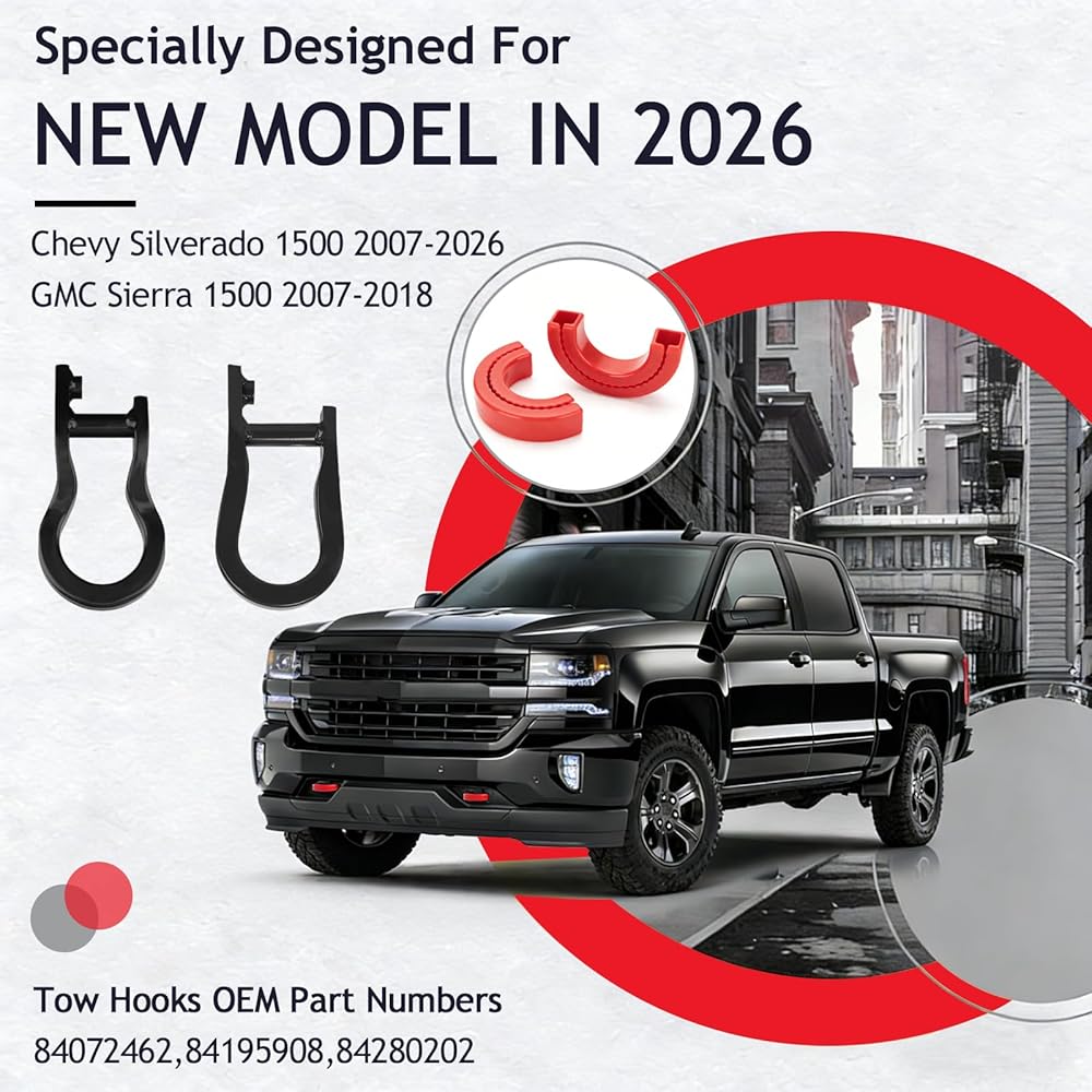 Tow Hooks Covers Fits for Chevy Silverado 1500 2007-2026/GMC Sierra 1500 2007-2018,Front Tow Hooks Covers for Chevy Silverado 1500 Accessories 2007-2026(Red)