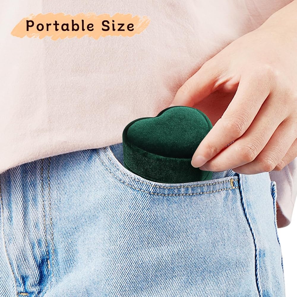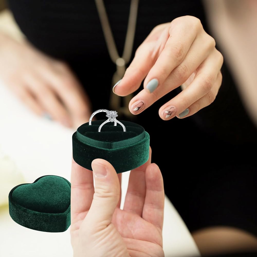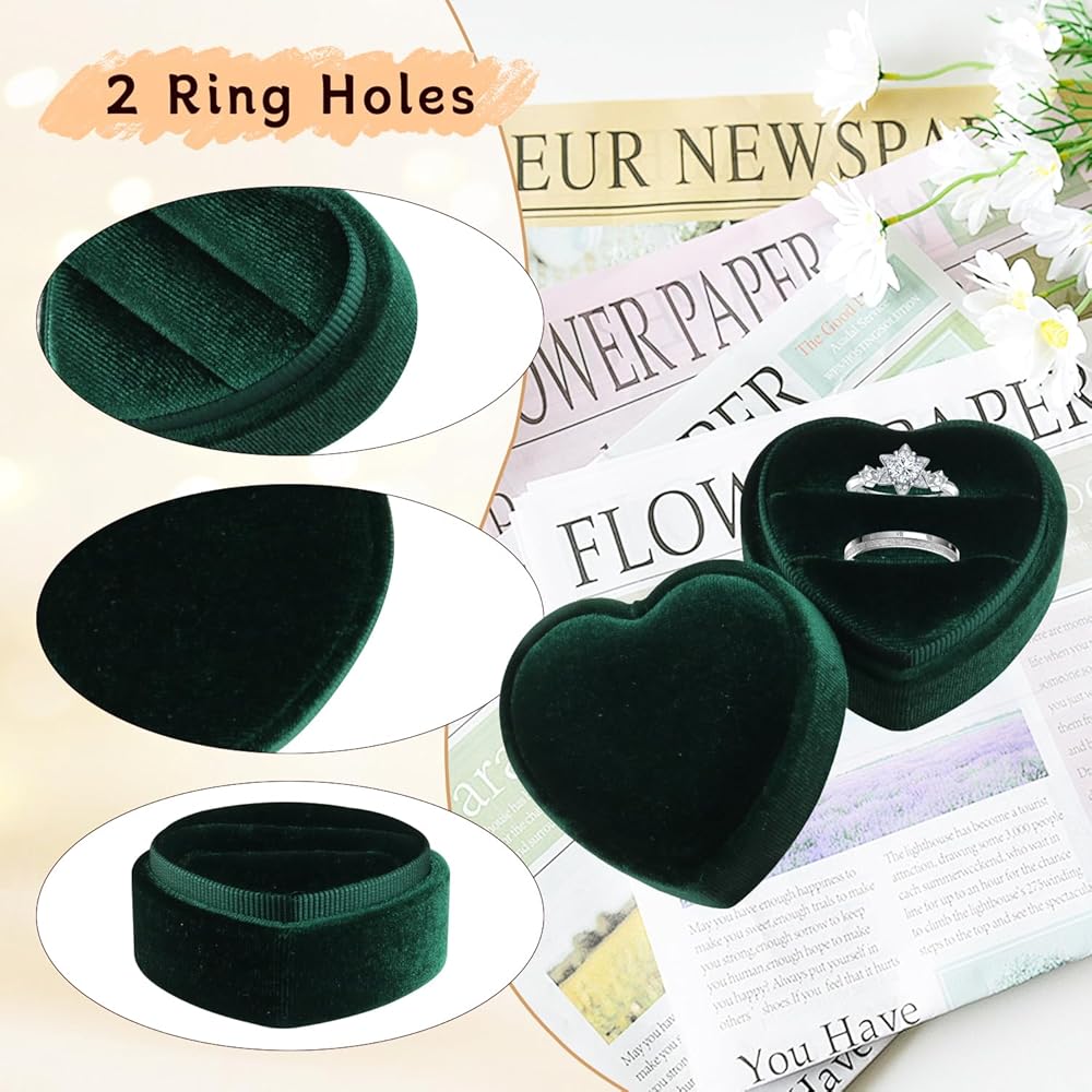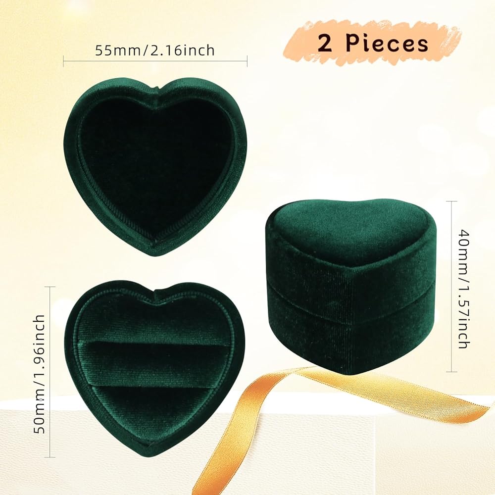 2 Pieces Small Green Velvet Heart Shape Ring Box,2 Slots Ring Box for Wedding Ceremony,Ring Display Holder Case,Premium Ring Bearer Boxes for Proposal Engagement