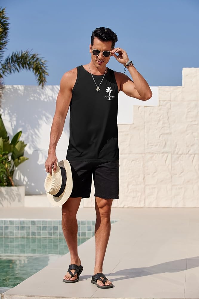🌴【Occasion】Men's beach sleeveless t shirts are perfect for leisure occasions like vacation, travel, beach, party, casual daily wearing. The quick-dry and stretchy fabric also makes it suitable for various sports or outdoor activities like workout, swimming, gym, running, jogging, ball sports, yard work, hiking, camping etc.