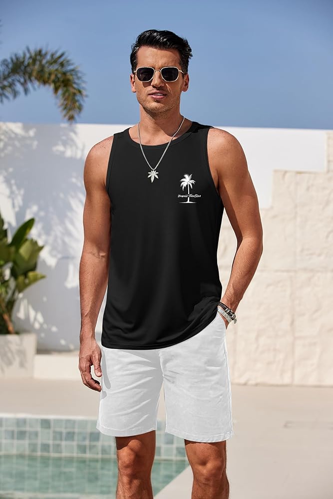 🌴【Skin-friendly Material】Our men's Hawaiian palm tree style tank top is made of highly stretchy, quick-dry milk silk cool fabric, ensures all-day comfort and cool in hot summer. The soft, breathable, and moisture-wicking fabric also make it suitable for workout and outdoor activities.
