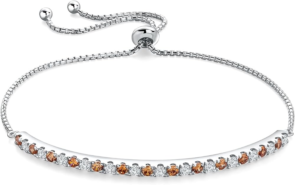 Bolo Bracelets, Birthstone or Moissanite Tennis Bracelets for Women 14K White Gold Plated Sterling Silver 2mm Multicolor Adjustable Tennis Bracelets for Women, Size 7.25"