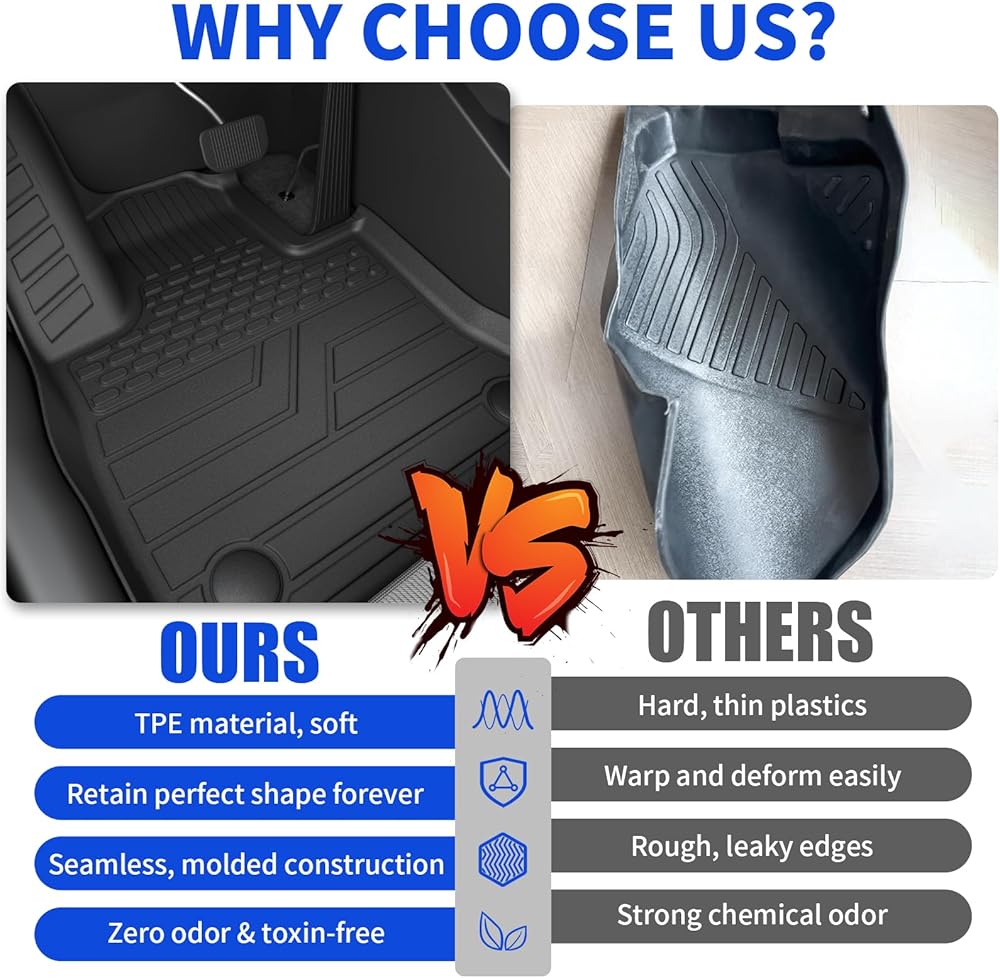 Material: Our mats are all made of high-quality of TPE, heat-resistant and scratch-resistant. This kind of material is environmentally friendly and healthy, not posing a health threat to passenagers in the car.