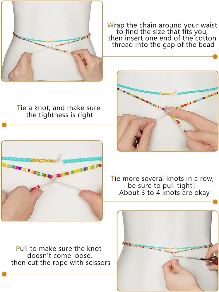 Reliable Durability: these waist bracelet body chains are threaded on cotton threads, they don't stretch, which minimizes the possibility that them will break when you move and perform everyday activities