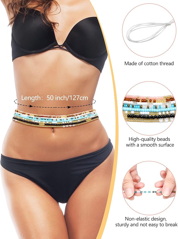 Multiple Styles: the package comes with 8 pieces of waist bead chains, each is 50 inches long, they are available in different styles, you can choose them to match your daily outfits, which make you never look the same every day